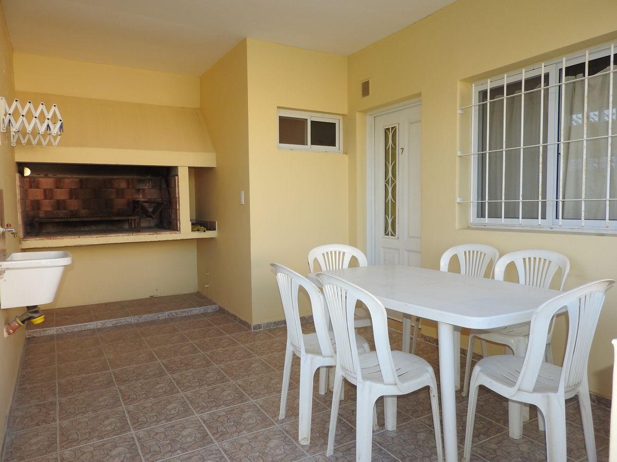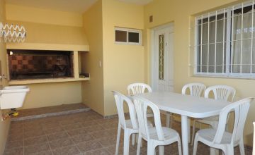 Cuenta con una galería amplia, parrilla con luz, pileta para lavar, tendedero y mesa de plástico con bancos de madera.