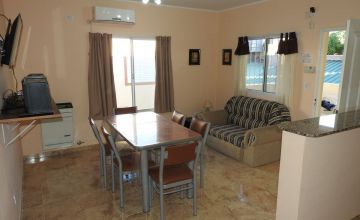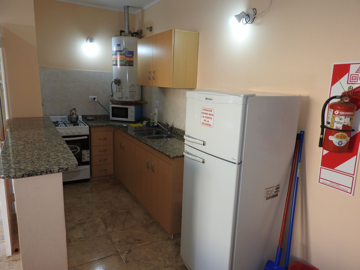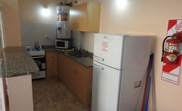 En la cocina encontramos el bajo mesada y mesada de granito natural, heladera con freezer, cocina, horno microondas, y termotanque. El Estar-comedor tiene un SMART TV 32’ , equipo de audio, Aire Acondicionado Split F/C, turbo ventilador de pie y calefactores.