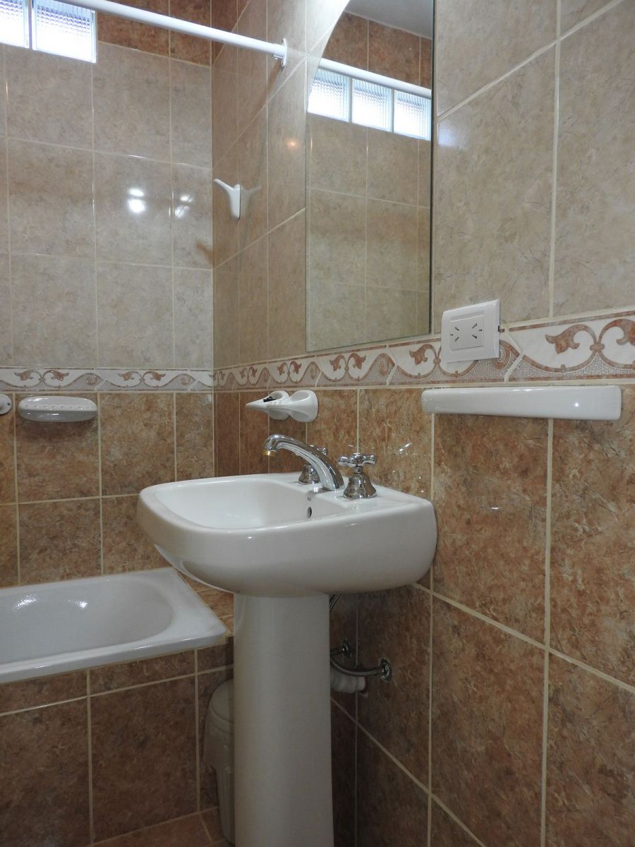 Cuenta con un baño amplio completo con bañera y un antebaño con bacha y grifería de calidad.