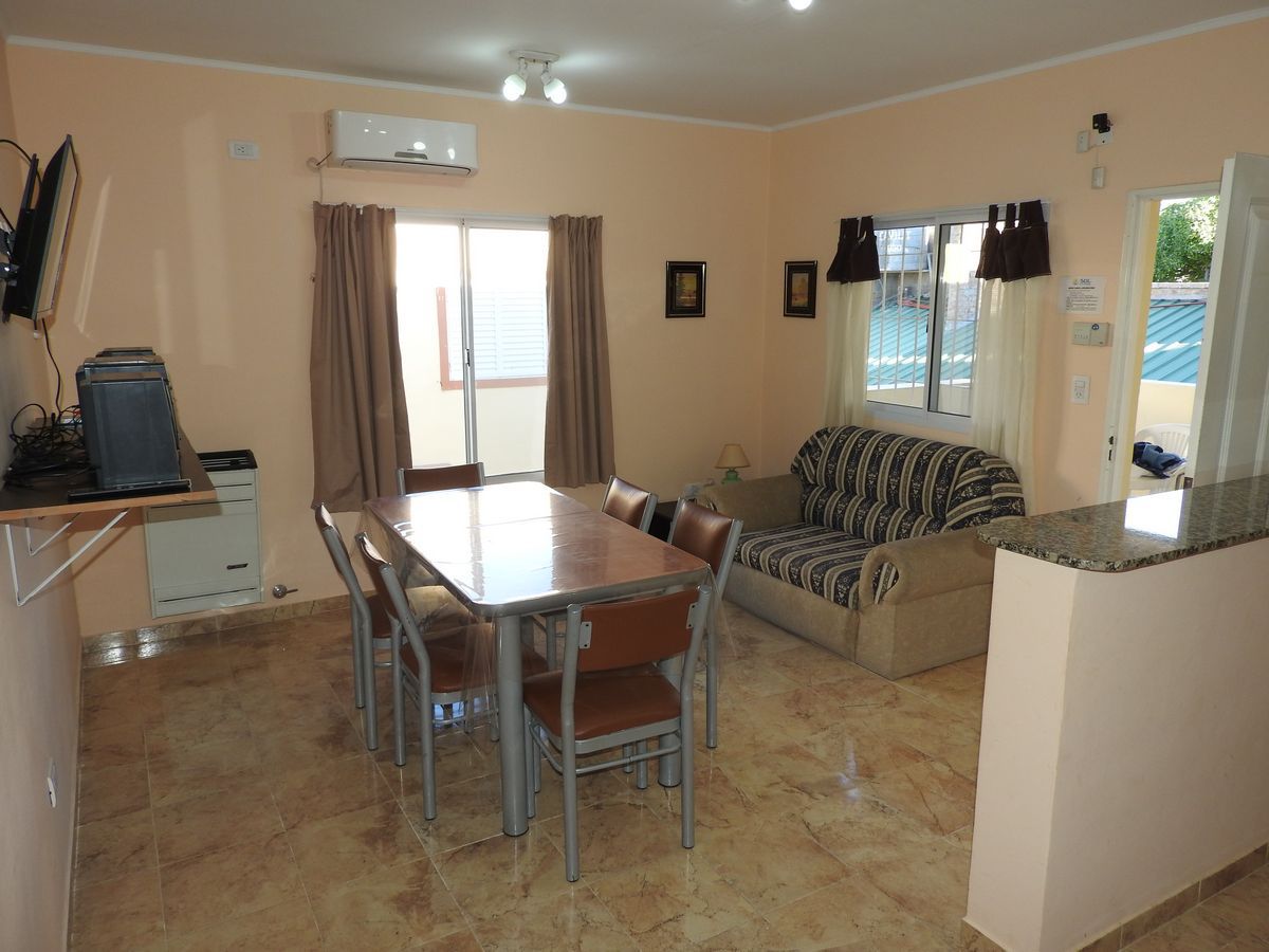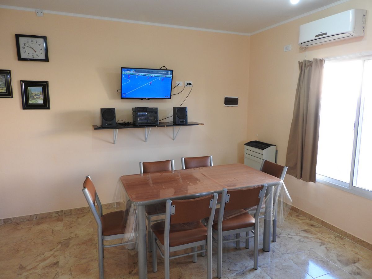 Cuenta con dos dormitorios, placard grande y mesitas de luz. El dormitorio principal tiene un somier matrimonial, TV LED 24´, y Aire Acondicionado Split F/C.